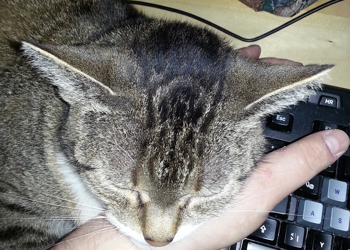 Mit so einer Katze auf der linken Hand ist man schon etwas eingeschränkt beim Tippen. Nicht nur das, sie tippt ja fleißig mit und ruft gelegentlich die Hilfe auf, interessiert sich dann aber keineswegs für die Anzeige. Ein absolutes Luxusproblem, bin ich doch froh über ihr Interesse an meiner Gesellschaft. Ich lasse mich dann auch gerne ablenken und verteile ein paar Streicheleinheiten. Sie diktiert mir dafür dann unsere nächste Geschichte. So wäscht eine Hand die andere – ganz ohne Wasser und Seife.