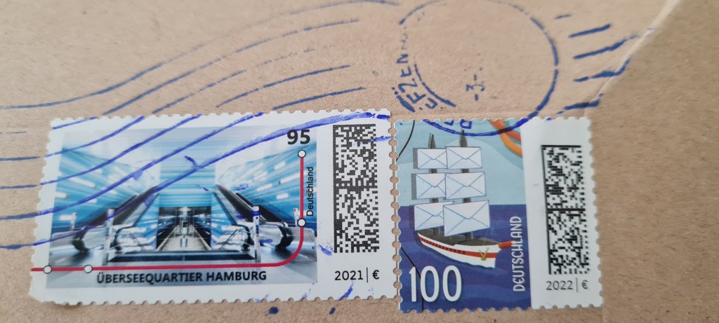 Gestern kam das Buch als Büchersendung an und ich liebe diese Briefmarken!